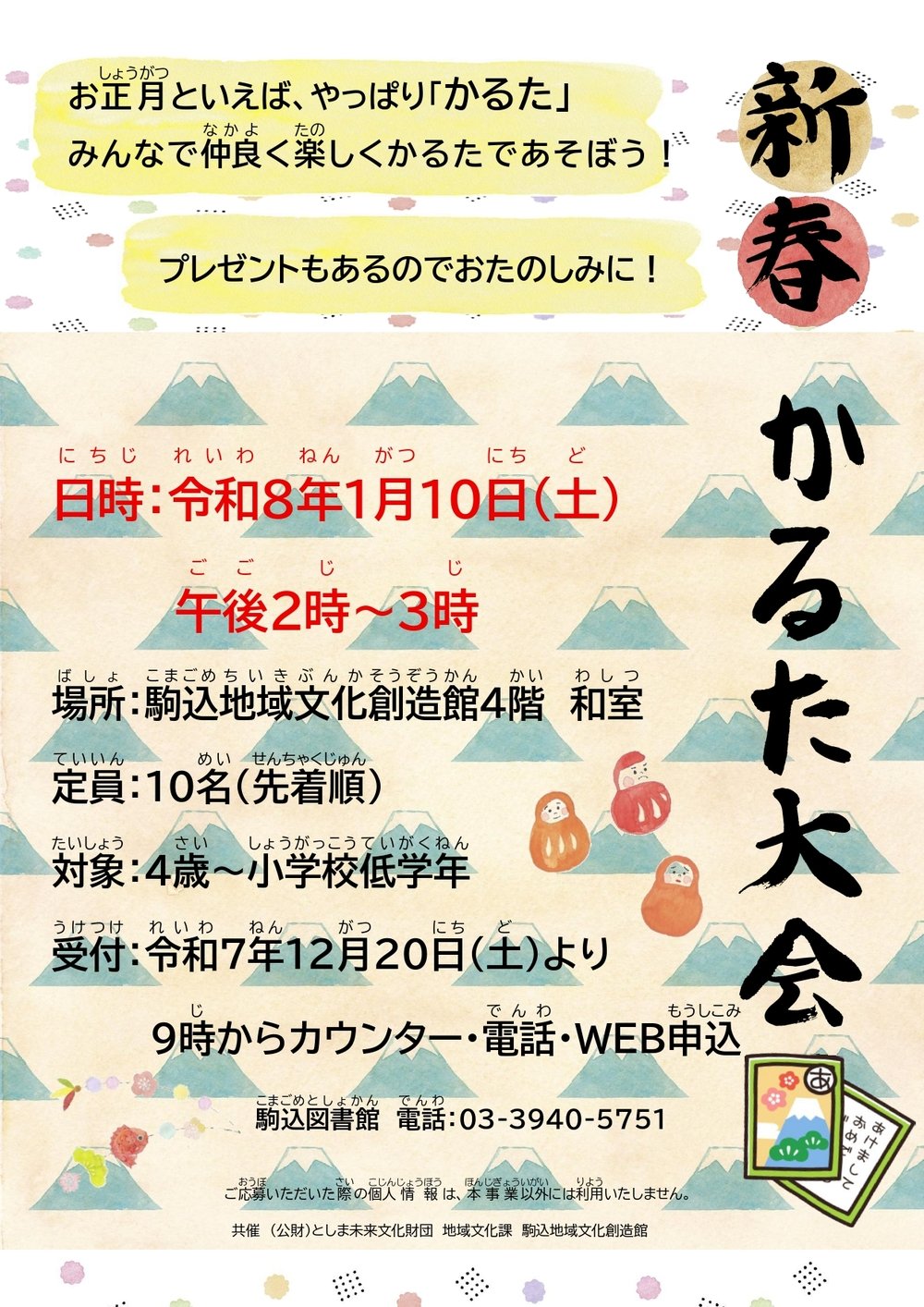 新春かるた大会 1月10日(土)14時~15時