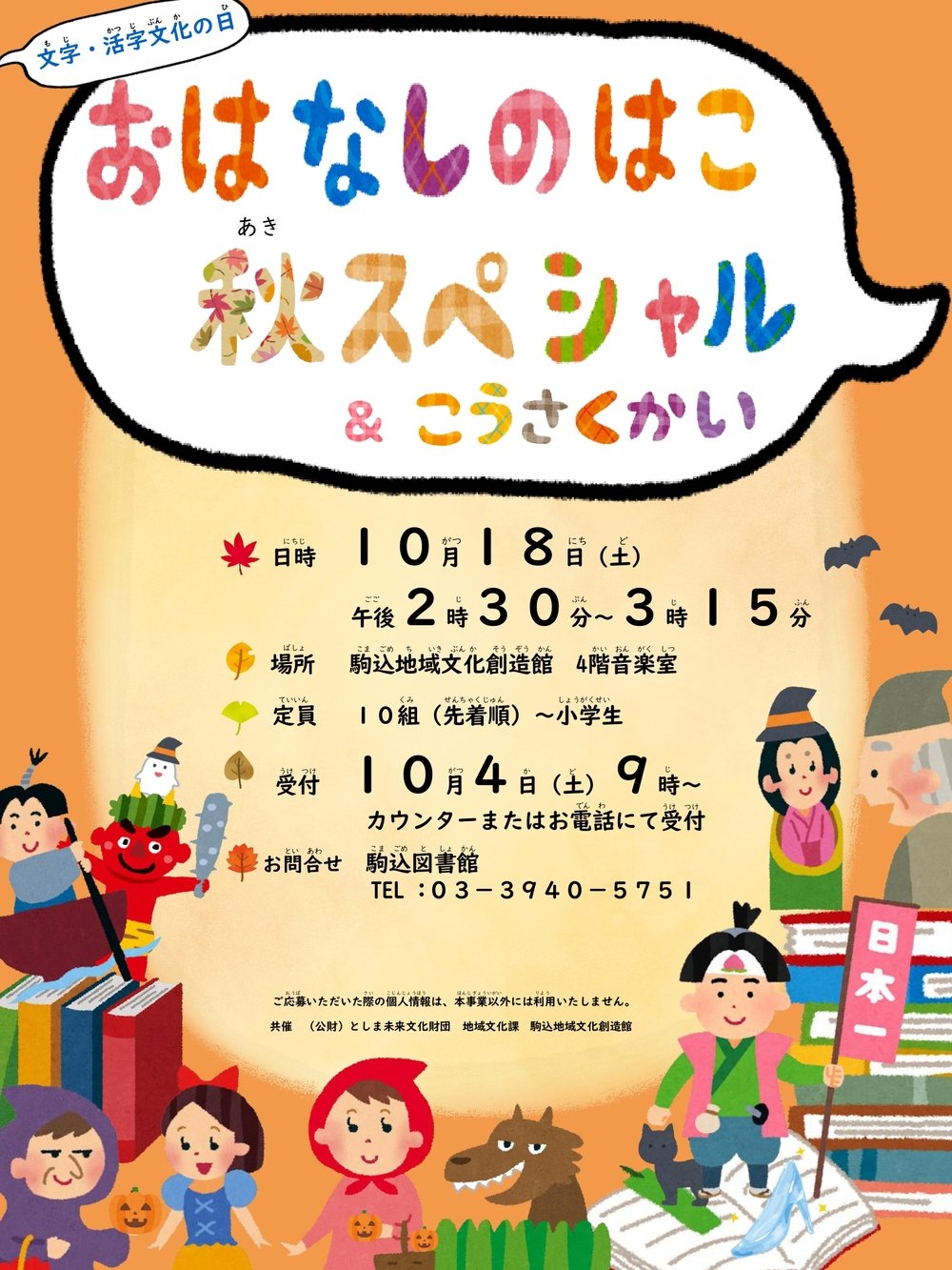 ※10月18日(土)の通常のおはなしかいはお休みになります。