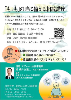 氏名・電話番号を明記の上、「目白図書館 相続講座」の文言を添えて